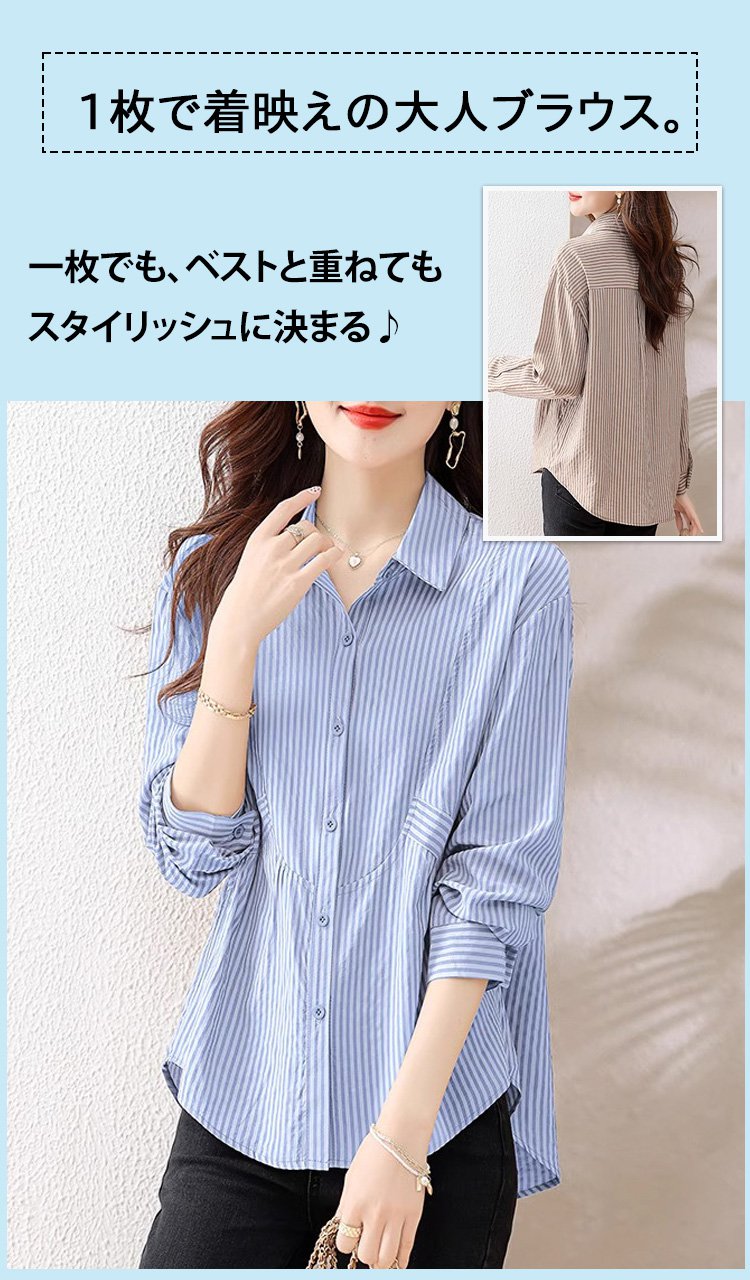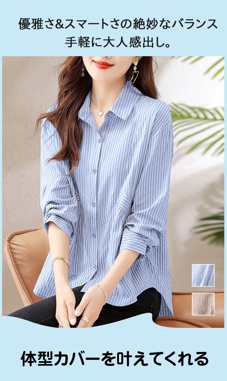 レディースゆっとりストライプブラウス