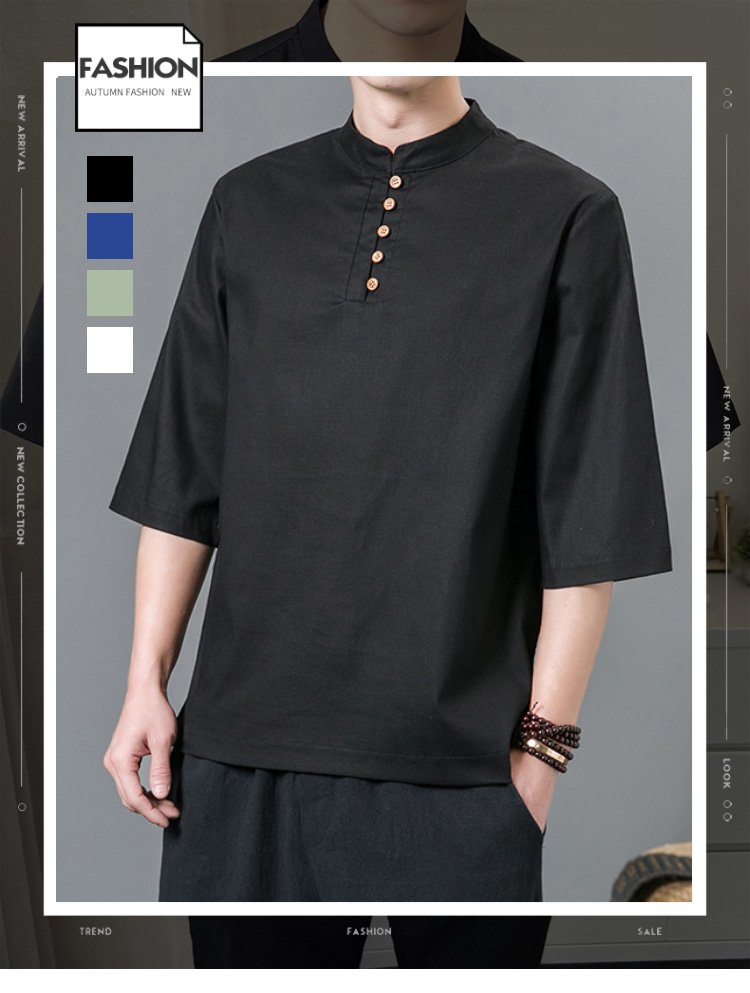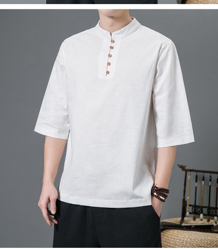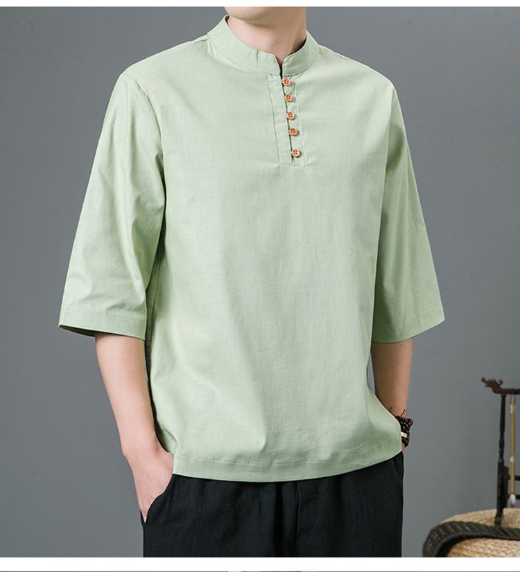半袖綿麻シャツ