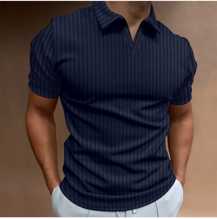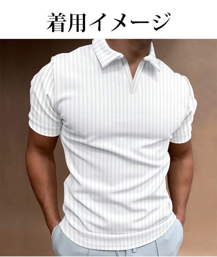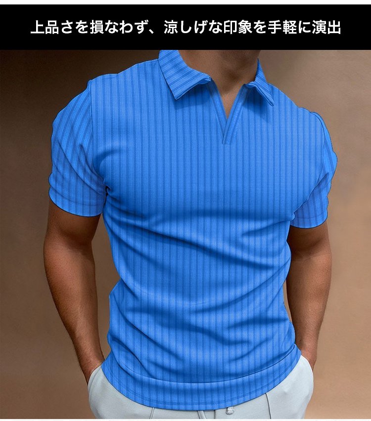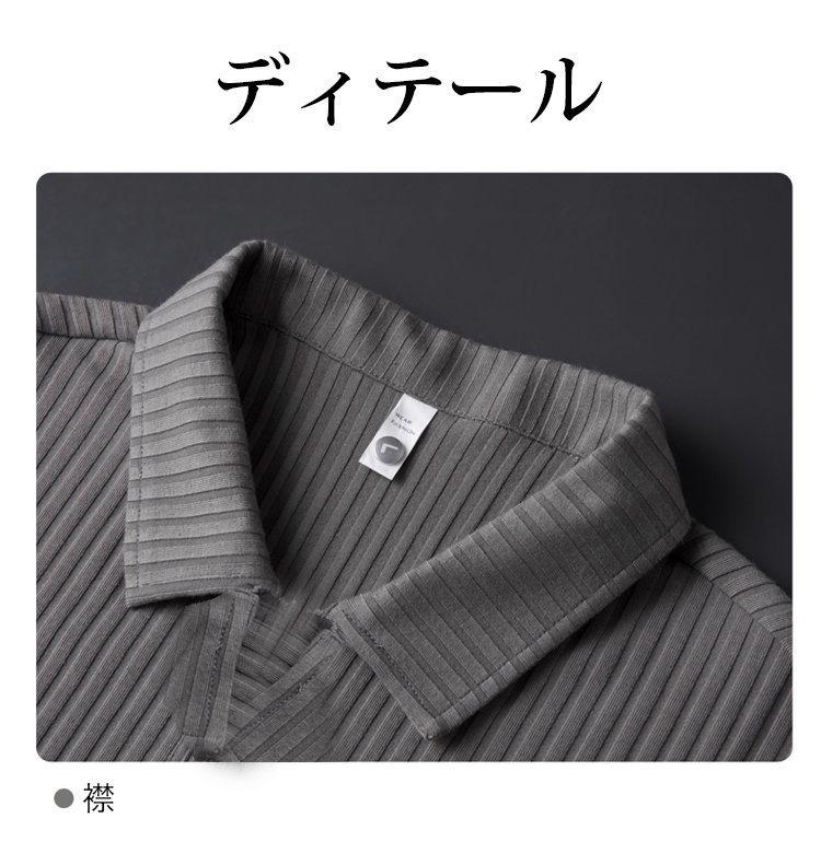 メンズリブ編みスキッパーポロシャツ